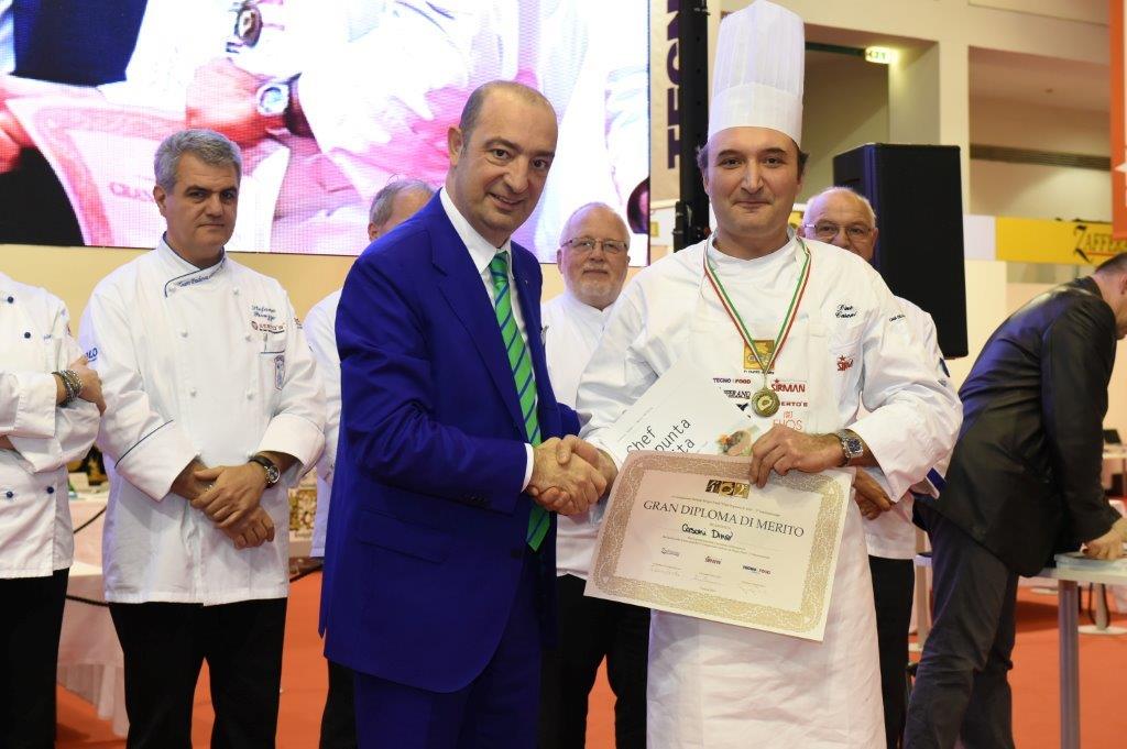 Domenica, giornata di apertura del concorso, per gli studenti ha vinto ARCANGELO FIORILLO, per i junior CRISTIAN MASON mentre tra i senior la vittoria è andata a MAURIZIO ESPOSITO. Lunedì, la giuria ha dato merito a GRAIFF NICOLE per gli studenti, per i junior a CHIARIN GIORGIA e per gli chef esperti a DENNIS SANTINELLO. Martedì, la giornata conclusiva è stata decisamente intensa per la giuria capitanata dal Presidente Giorgio Nardelli, guru dell’alta cucina affiancato da Gianluca Tomasi, massimo esperto italiano di finger food, da Fabio Tacchella giudice ufficiale della WACS World Association Chef Society, dal Presidente Cuochi Austriaci Eberhard Seyffer, dal Giudice Svizzero Bruno Keist, e dalla Chef Alma Rekic Capitano della Nazionale Slovena. Giurato tecnico Fabio Momolo cuoco e scultore di Abano Terme. A vincere per la categoria studenti MATTIA CAPITANIO, per i junior RAFFAELE MINUTE e per i senior un nome che non ha sorpreso, Chef FABIO MANCUSO che si è aggiudicato anche il punteggio più alto in assoluto.