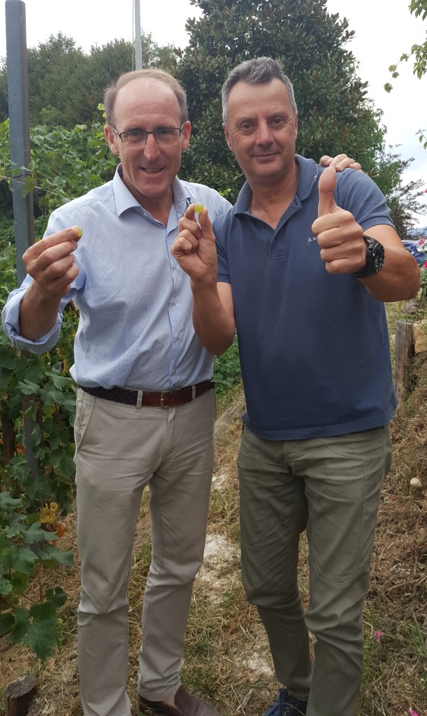 La vicinanza della montagna resta sempre l’elemento che determina la differenza perché la sera scivola verso la collina aria che porta frescura, abbassando la temperatura fino a 15 o 16 gradi rispetto al giorno. In questo periodo si assiste ad una buona escursione termica con notti fresche e giornate miti, si sa attendendo un po’ di pioggia per avere un miglior completamento di maturazione dell’acino, ma nel complesso le piante non sono in sofferenza.