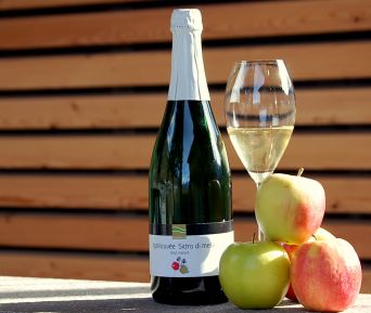 “Una mela al giorno…” l’avevano capito gli antichi greci e lo sanno bene in Alto Adige, zona di produzione di mele per eccellenza. Lana e dintorni, in provincia di Bolzano, è il più vasto territorio altoatesino di coltivazione di questo prezioso frutto: nei meleti dei circa 1.000 frutticoltori si raccolgono 60.000/70.000 tonellate all’anno di varie qualità di mele. Affianca questa importante realtà un altro grande settore della cultura enogastronomica della regione, la lunga tradizione vinicola altoatesina, che vanta una storia millenaria. È il 2010 quando i due mondi si incontrano in un prodotto unico, nato dalla passione e dalle competenze del produttore Peter Thuile: lo spumante di mele del maso Sandwiesnhof, azienda frutticola a gestione familiare di Gargazzone (BZ).