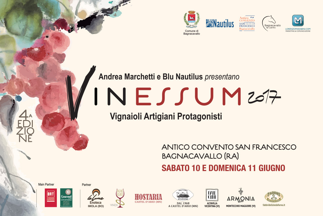 Sabato 10 e domenica 11 giugno il vino sarà protagonista nel chiostro del convento di San Francesco, a Bagnacavallo, grazie a Vinessum, evento ideato da Andrea Marchetti che porrà l’accento su oltre cento vignaioli artigiani che producono vino nel pieno rispetto dei ritmi e dei processi della natura.