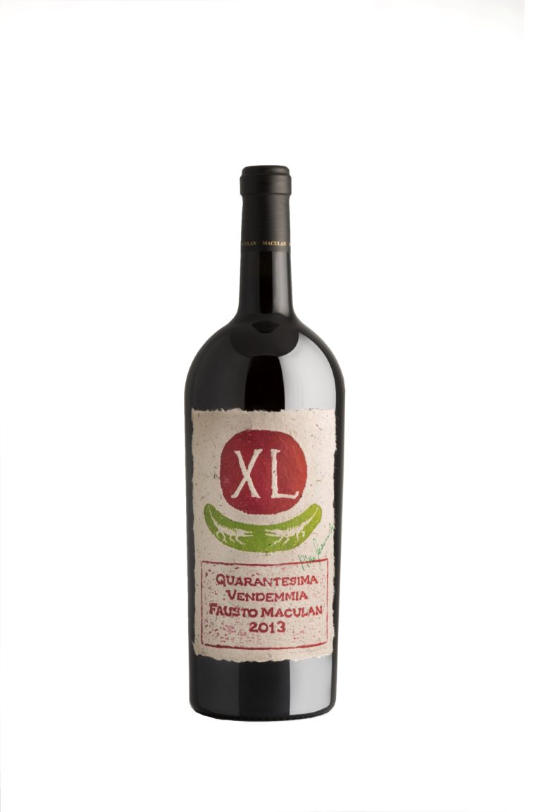 Una svolta storica per l’azienda fondata nei primi anni Cinquanta da Giovanni Maculan e saldamente nelle mani di Fausto dal 1973. L’annata 2013 è stata la sua quarantesima vendemmia, celebrata con XL Vendemmia, vino a tiratura limitata voluto dalle figlie Angela e Maria Vittoria per festeggiare il padre. Appena 300 magnum di Cabernet Sauvignon Breganze DOC prodotto con uve provenienti dal vigneto Branza e vestite con un’etichetta realizzata a mano dall’artista vicentino Pino Guzzonato trasformando in carta la fibra ottenuta dai raspi degli stessi grappoli d’uva da cui si è ottenuto il mosto.