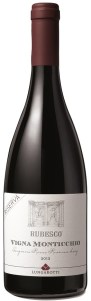 Il Rubesco Vigna Monticchio (Torgiano Rosso Riserva Docg), è prodotto da uve Sangiovese macerate sulle bucce per circa 20 giorni, maturato un anno in botte grande e in barrique e infine affinato vari anni in bottiglia. Per la sua complessità è atto a un invecchiamento medio di 30‐35 anni. Oltre alle tenute di Torgiano e Montefalco, che sommano 250 ettari di vigneto (circa 2,5mln di bottiglie all’anno), la famiglia Lungarotti è attiva su tutta la filiera del vino, con la Fondazione Lungarotti e i Musei dell’olio e del vino (quest’ultimo definito “il migliore in Italia” dal NY Times) e i casolari dell’agriturismo Poggio alle Vigne.