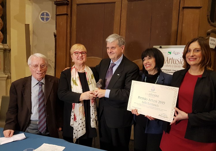 “È la prima volta che vengo a Forlimpopoli e sono davvero felice di essere qui a ritirare un premio dedicato all’Artusi. Il suo Manuale per me è stato un punto di riferimento, mi ha fatto conoscere la cucina italiana delle varie regioni. In tutti i miei locali c’è una copia del libro tradotto”. A dirlo è Lidia Bastianich in occasione del conferimento del Premio Artusi, ieri (lunedì 2 dicembre) a Forlimpopoli in una gremitissima Chiesa dei Servi a Casa Artusi. Autrice di best seller con ben dodici pubblicazioni di cucina, imprenditrice di successo con numerosi locali, Lidia Bastianich negli States è una vera e propria ambasciatrice della cucina italiana che racconta nel programma Lidia’s Kitchen sulla Pbs, seguito da 50 milioni di americani.