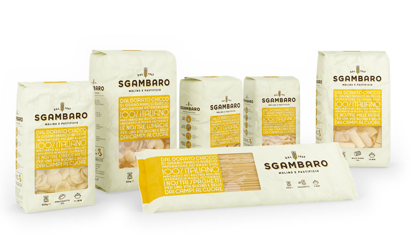 Con il Marco Aurelio Sgambaro realizza l’intera gamma “Etichetta Gialla”, diventata nel tempo garanzia di tracciabilità e di origine sicura e 100% italiana. Il grano è macinato direttamente dall’azienda all’interno dello storico stabilimento di Castello di Godego, nella campagna trevigiana.