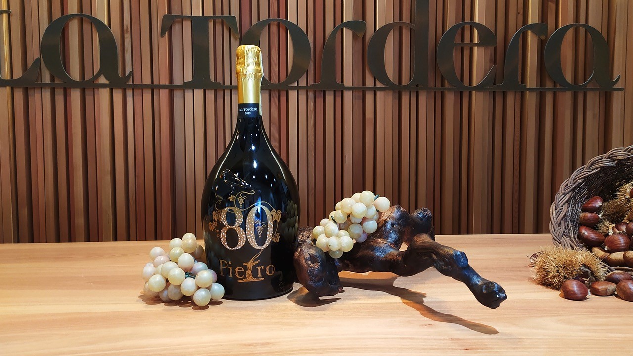 Il Tittoni “Rive di Vidor” Valdobbiadene DOCG La Tordera per l’ “80° Pietro” è una limited edition dal formato Magnum, tributo al fondatore de La Tordera e capostipite della famiglia Vettoretti, voluta dai figli per suggellare l’importante traguardo del padre. Le bottiglie sono state decorate una ad una, a mano, da un’abilissima Ilaria Marrai, artista versatile molto conosciuta nel territorio, che ha interpretato la passione di Pietro per la vigna e le sue primavere con una rappresentazione artistica della vite e del numero 80 che decora quasi tutta la superficie della bottiglia. Ilaria Marrai ha collaborato con La Tordera anche in occasione della realizzazione della mappa del territorio e della denominazione presente nella nuovissima sala degustazione della Cantina La Tordera, inoltre ha dipinto la meridiana sulla facciata del B&B Casa Oltraval, di recentissima apertura.